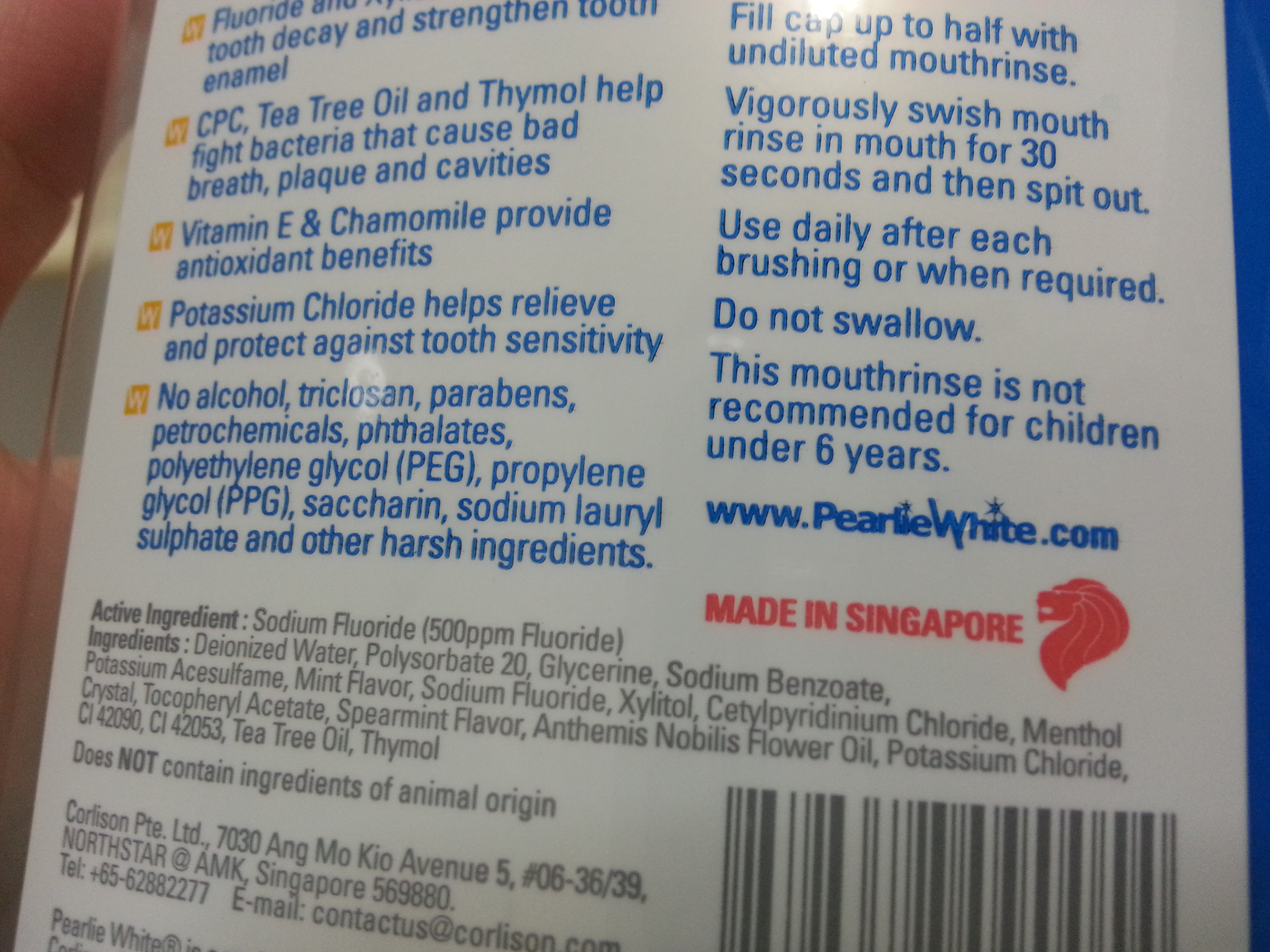 Whatsmore, they’re cheaper than some other major brands we might be using! Well, when they’re on offer anyway. I bought my Pearlie White mouthwash at 2 x 750ml bottles for around $7-8. And each use only calls for half a cap of solution, not the full cap.